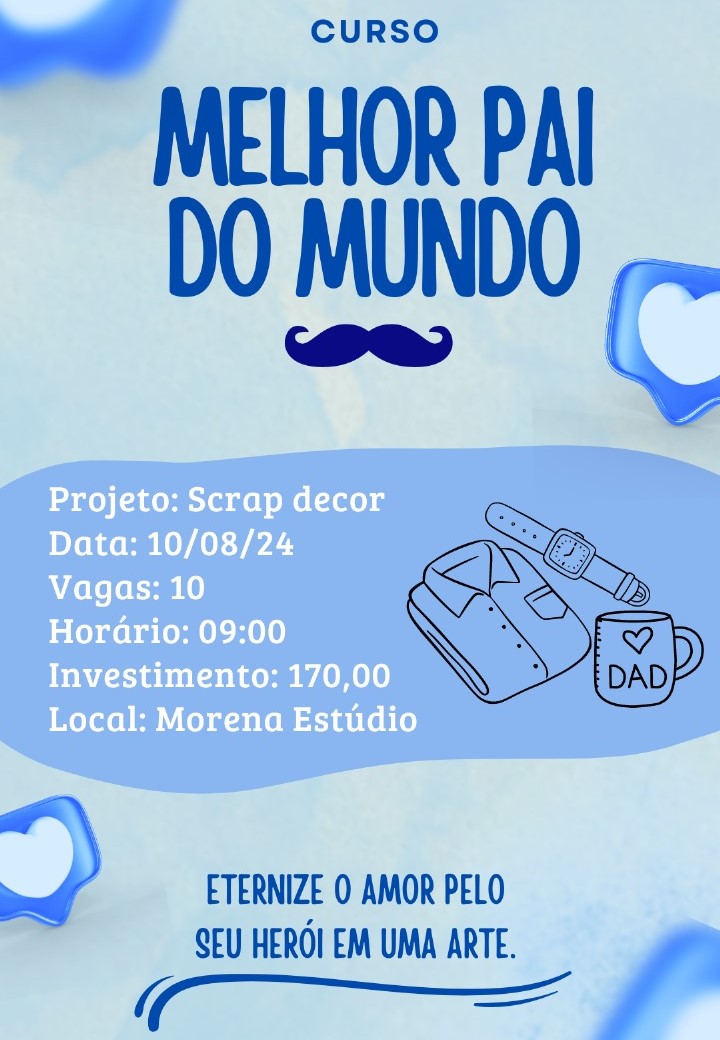 Surpreenda seu pai neste Dia dos Pais com um presente feito à mão, cheio de amor e dedicação. Inscreva-se agora e garanta sua vaga nesta aula especial de scrapbook, onde cada detalhe será pensado para tornar esse momento inesquecível!
